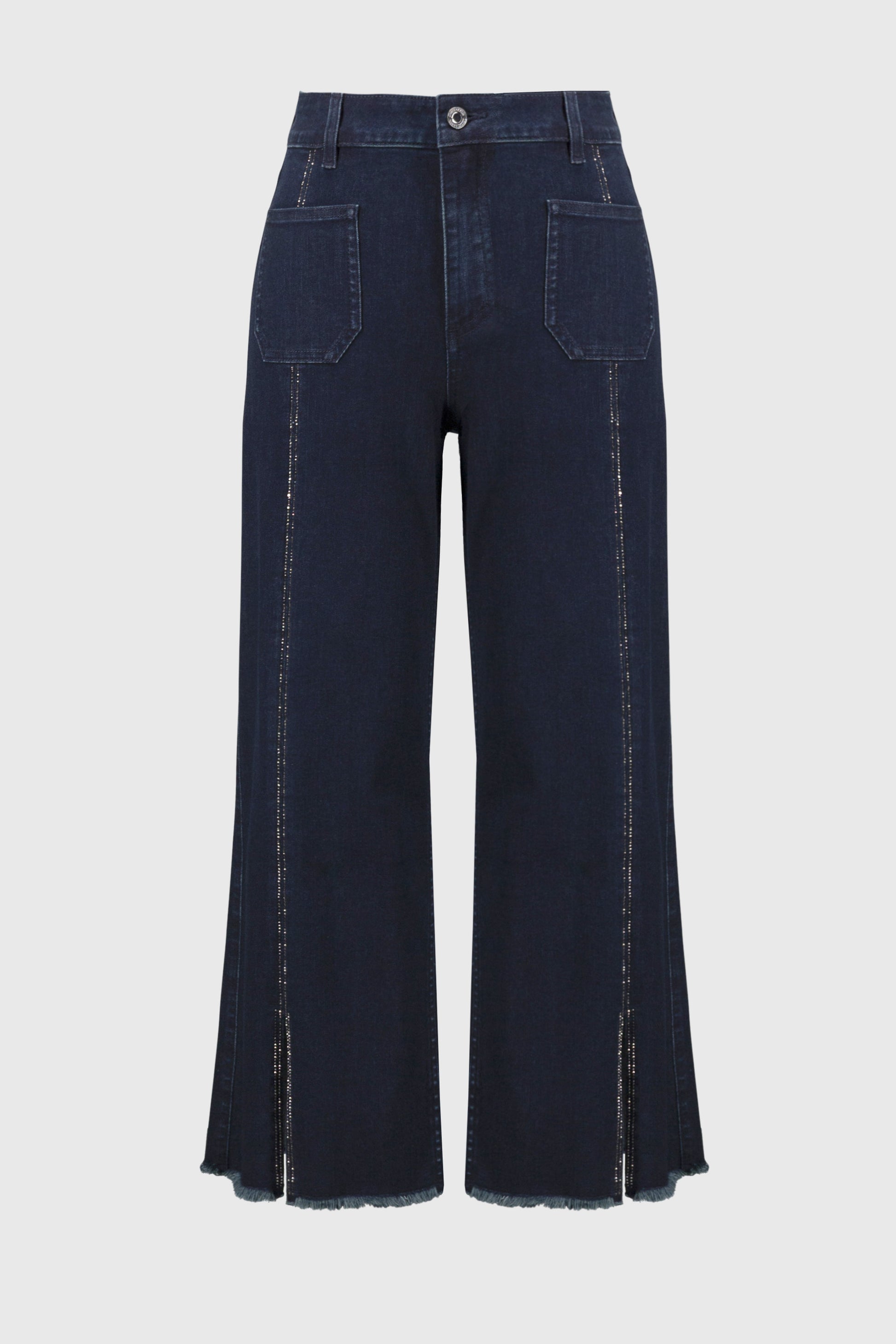 Dark Blue Culotte Jeans with Embellished Front Seam (241903S25)